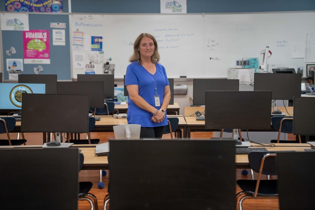 In an empty classroom, Allen walks over to a desk where a three-ring binder sits. It contains about 25 pages of materials that GameChanger has provided, including a theme for each month and suggested activities, many of which come from other national prevention education programs,...